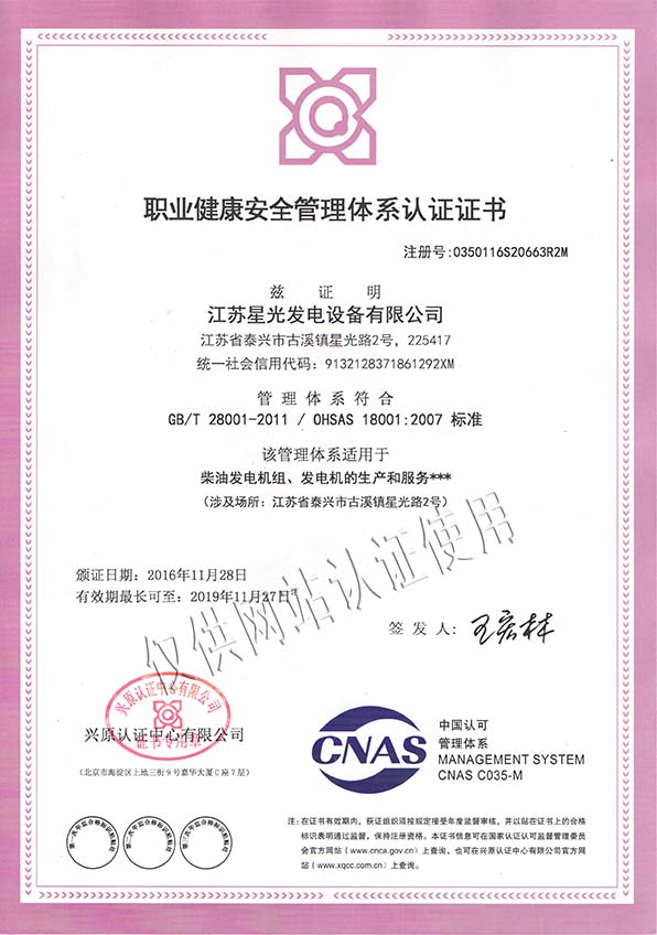 公司自1992年開(kāi)始,一直為“國(guó)家內(nèi)燃機(jī)發(fā)電機(jī)組質(zhì)量監(jiān)督檢驗(yàn)中心”檢驗(yàn)合格的發(fā)電機(jī)組制造廠(chǎng)商,通過(guò)ISO9001-2008質(zhì)量體系認(rèn)證,ISO1400:2004環(huán)境管理體系認(rèn)證,GBIT28001-2001職業(yè)健康安全管理體系認(rèn)證并并獲得自營(yíng)進(jìn)出口資格、信息產(chǎn)業(yè)部入網(wǎng)資格、廣電部入網(wǎng)資格、中石油入網(wǎng)資格、中國(guó)移動(dòng)入網(wǎng)資格、船用機(jī)組制造資格。了解更多