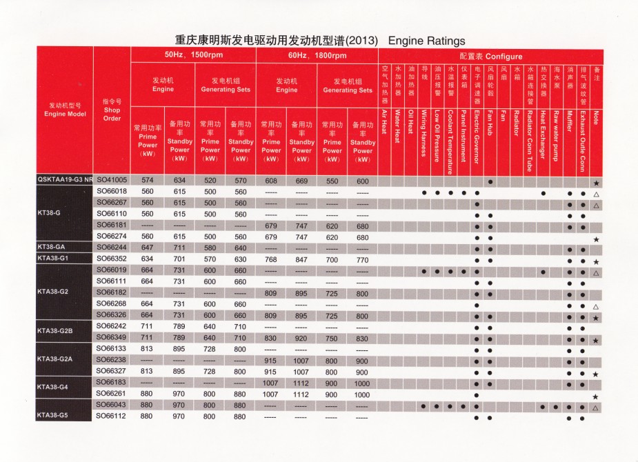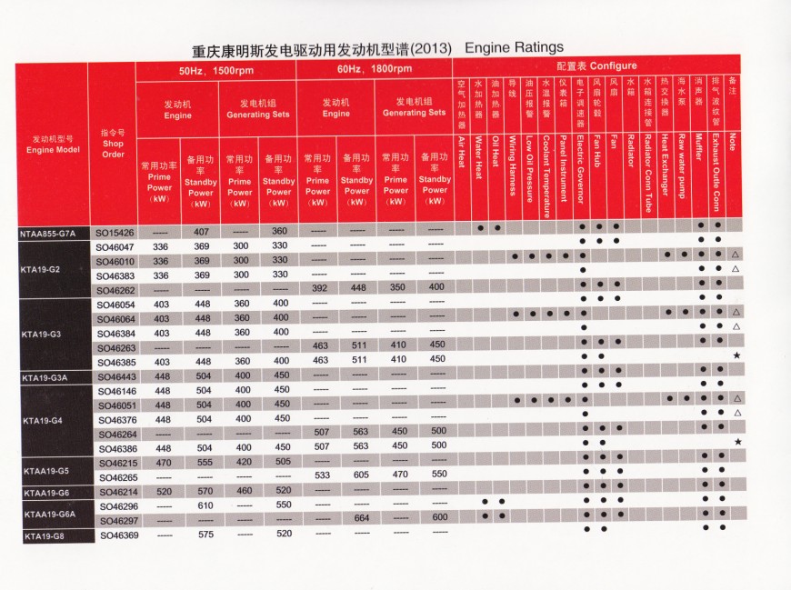 江蘇星光發(fā)電設(shè)備有限公司 >> 新聞動(dòng)態(tài) >> 技術(shù)支持 >> 康明斯標(biāo)配原廠說明表